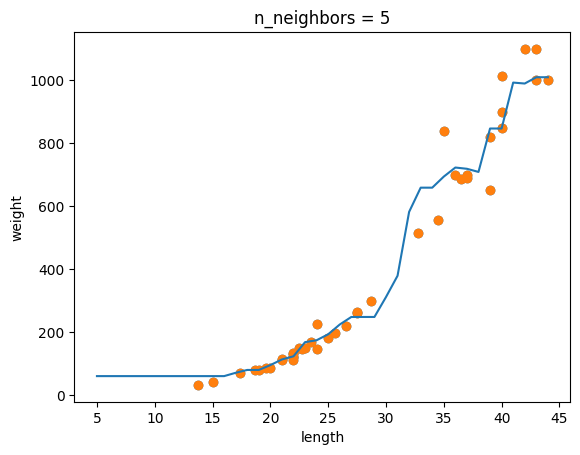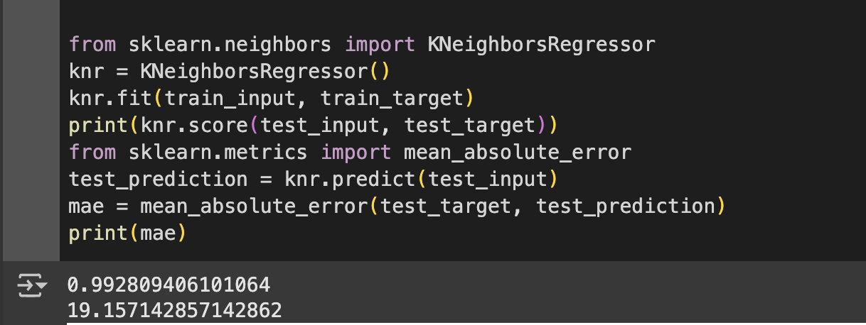 사이런킷 K- 최그접 이웃 회귀 알고리즘 구현 클래스 : KNeighborsRegressor