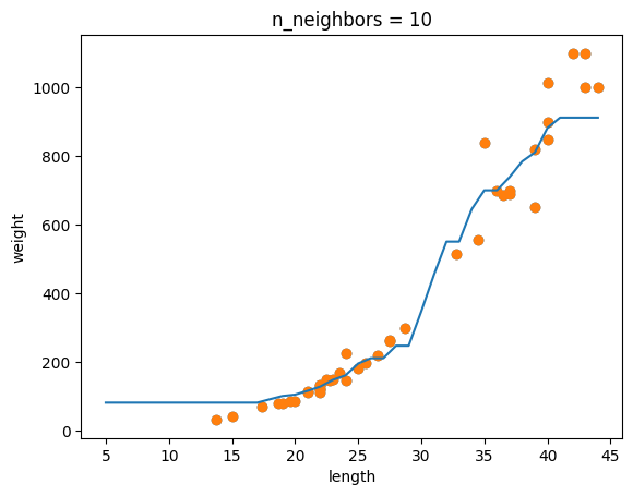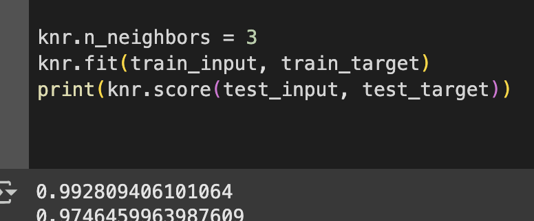 과소적합 (underfitting) : 훈련테스트보다 테스트의 점수가 높거나 두 점수가 너무 낮은경우